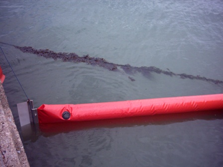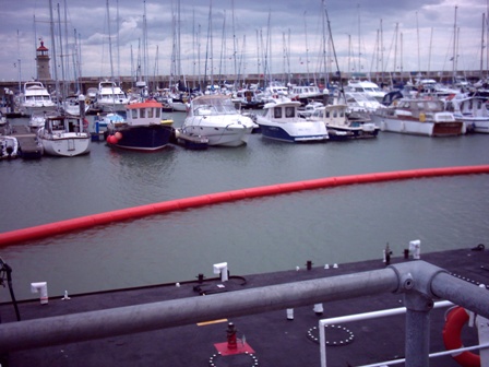 Below are pictures of a 30mtr x 60cm inflatable boom we manufatured for our own use. The boom was successfully deployed during a pollution control training exercise at Ramsgate Harbour in 2009.